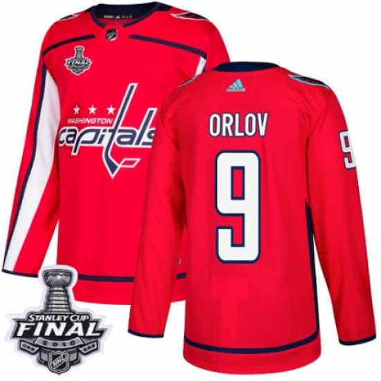 Men's Adidas Washington Capitals #9 Dmitry Orlov Authentic Red Home 2018 Stanley Cup Final NHL Jersey