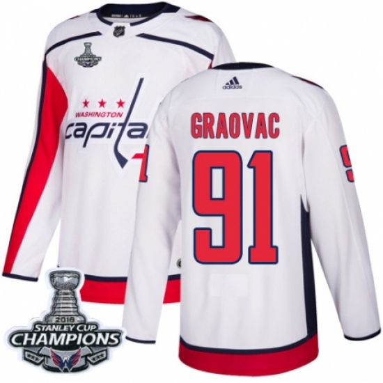 Men's Adidas Washington Capitals #91 Tyler Graovac Authentic White Away 2018 Stanley Cup Final NHL Jersey