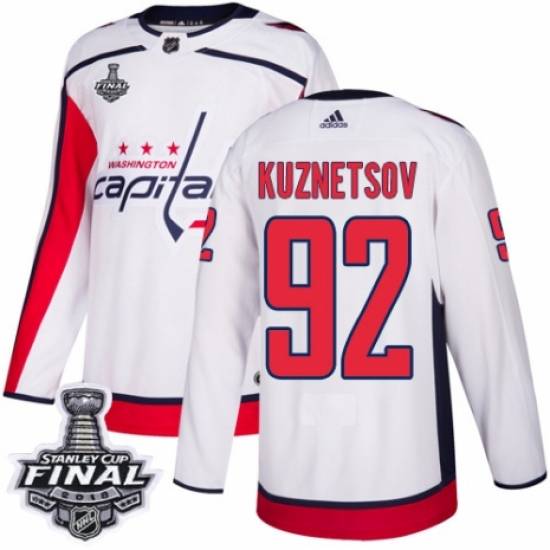 Youth Adidas Washington Capitals #92 Evgeny Kuznetsov Authentic White Away 2018 Stanley Cup Final NHL Jersey