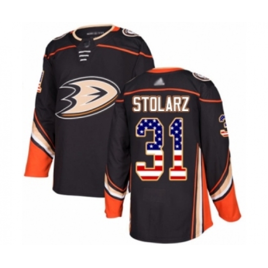 >Youth Anaheim Ducks #31 Anthony Stolarz Authentic Black USA Flag Fashion Hockey Jersey