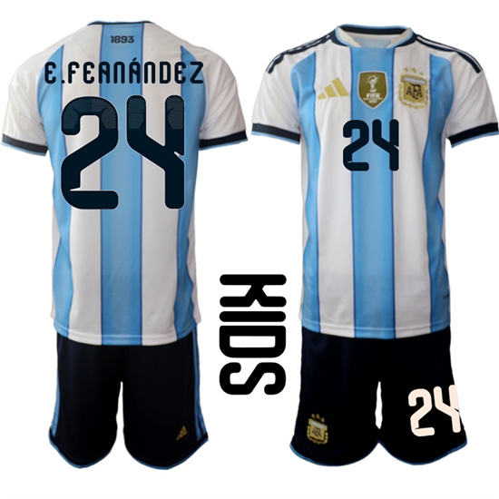 Youth Argentina #24 E.FEANANDEZ National Team FIFA x World Cup 2026 Home White On Field Kids Jersey