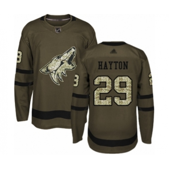 Youth Arizona Coyotes #29 Barrett Hayton Authentic Green Salute to Service Hockey Jersey