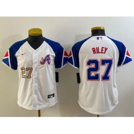 Youth Atlanta Braves #27 Austin Riley Number White 2023 City Connect Cool Base Stitched Jersey