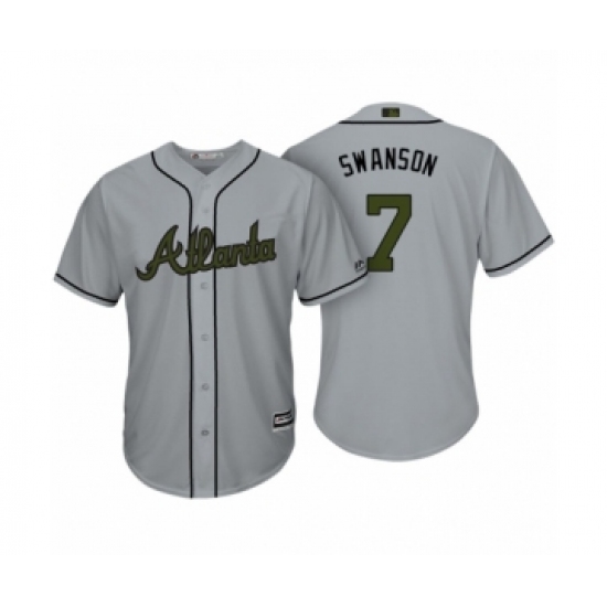 >Youth Atlanta Braves #7 Dansby Swanson Gray 2017 Memorial Day Cool Base Jersey