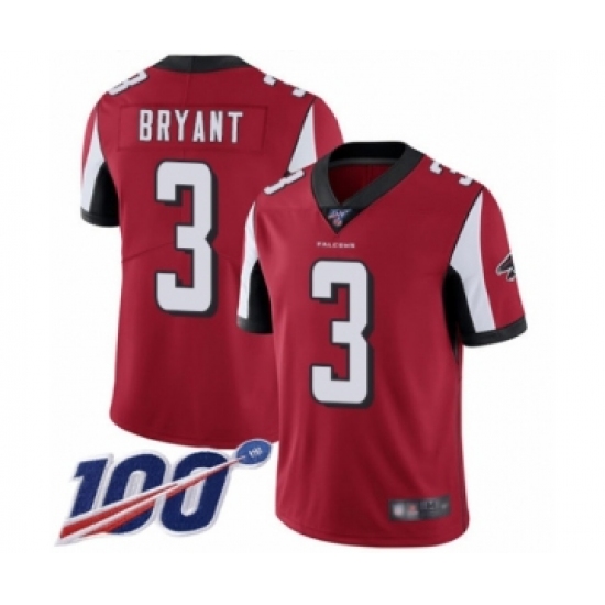 >Youth Atlanta Falcons #3 Matt Bryant Red Team Color Vapor Untouchable Limited Player 100th Season Football Jersey