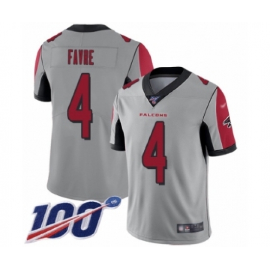 >Youth Atlanta Falcons #4 Brett Favre Limited Silver Inverted Legend 100th Season Football Jersey