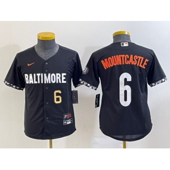 Youth Baltimore Orioles #6 Ryan Mountcastle Black 2023 City Connect Cool Base Stitched Jersey 1