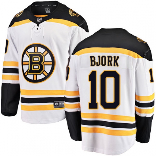 Home>NHL>Boston Bruins>Anders Bjork>Youth Boston Bruins #10 Anders Bjork Authentic White Away Fanatics Branded Breakaway NHL Jersey