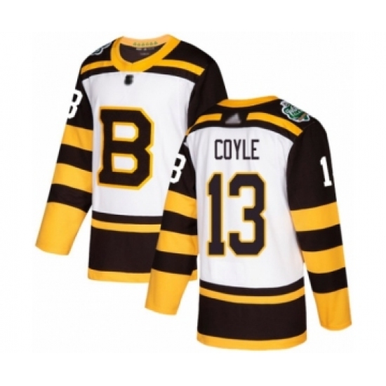 >Youth Boston Bruins #13 Charlie Coyle Authentic White 2019 Winter Classic Hockey Jersey