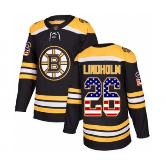 Youth Boston Bruins #26 Par Lindholm Authentic Black USA Flag Fashion Hockey Jersey