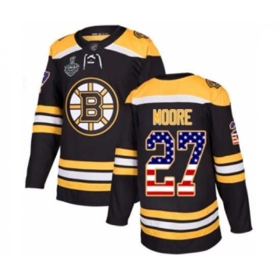 Youth Boston Bruins #27 John Moore Authentic Black USA Flag Fashion 2019 Stanley Cup Final Bound Hockey Jersey