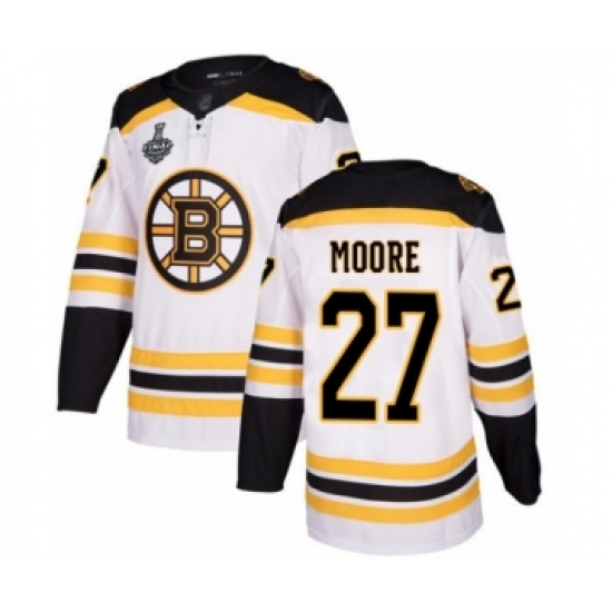 Women's Boston Bruins #27 John Moore Authentic White Away 2019 Stanley Cup Final Bound Hockey Jersey