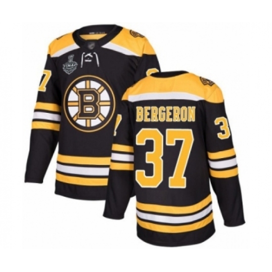 Youth Boston Bruins #37 Patrice Bergeron Authentic Black Home 2019 Stanley Cup Final Bound Hockey Jersey