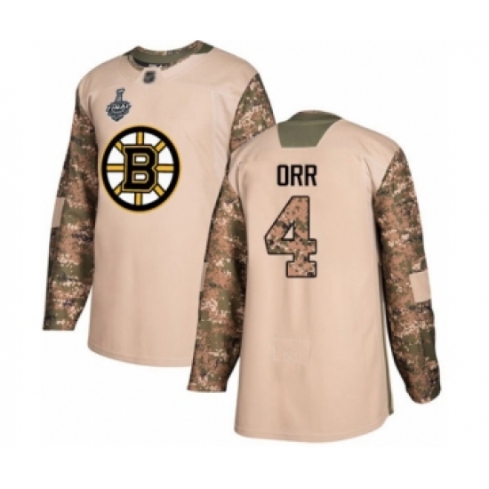 >Youth Boston Bruins #4 Bobby Orr Authentic Camo Veterans Day Practice 2019 Stanley Cup Final Bound Hockey Jersey