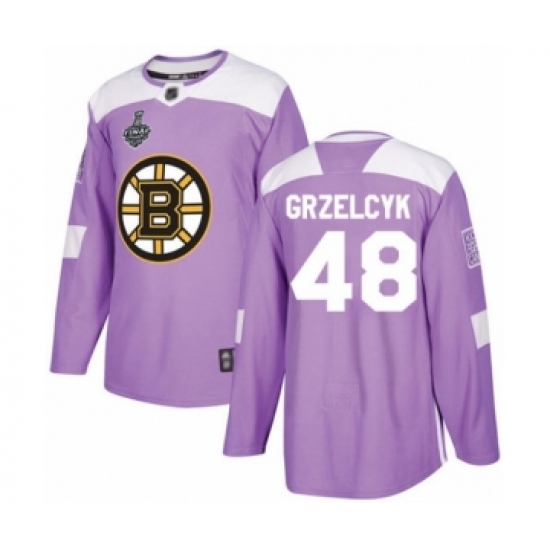 >Youth Boston Bruins #48 Matt Grzelcyk Authentic Purple Fights Cancer Practice 2019 Stanley Cup Final Bound Hockey Jersey