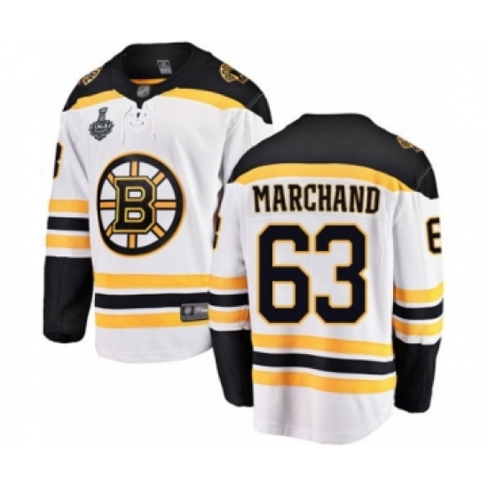 Youth Boston Bruins #63 Brad Marchand Authentic White Away Fanatics Branded Breakaway 2019 Stanley Cup Final Bound Hockey Jersey