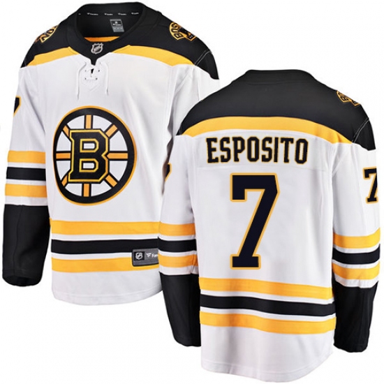 Home>NHL>Boston Bruins>Phil Esposito>Youth Boston Bruins #7 Phil Esposito Authentic White Away Fanatics Branded Breakaway NHL Jersey