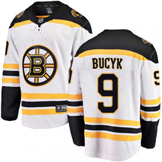 Home>NHL>Boston Bruins>Johnny Bucyk>Youth Boston Bruins #9 Johnny Bucyk Authentic White Away Fanatics Branded Breakaway NHL Jersey
