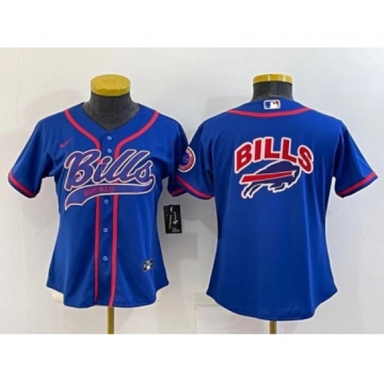 >Youth Buffalo Bills Royal Team Big Logo With Patch Cool Base Stitched Baseball Jersey
