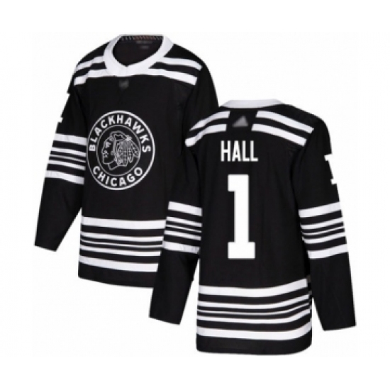 Men's Adidas Chicago Blackhawks #1 Glenn Hall Authentic Black 2019 Winter Classic NHL Jersey