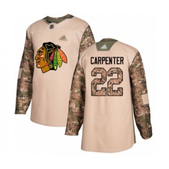 >Youth Chicago Blackhawks #22 Ryan Carpenter Authentic Camo Veterans Day Practice Hockey Jersey