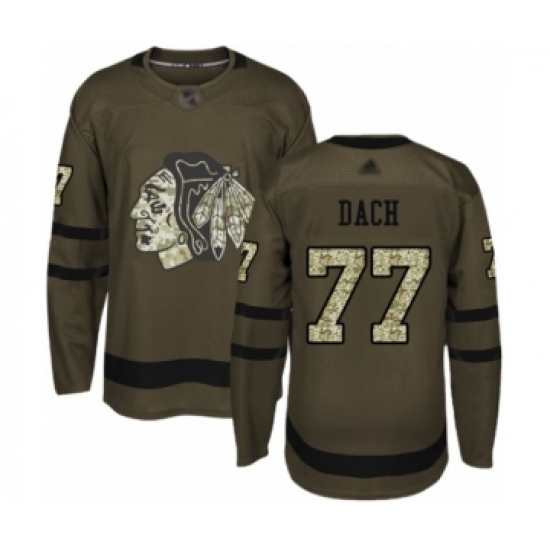 >Youth Chicago Blackhawks #77 Kirby Dach Authentic Green Salute to Service Hockey Jersey