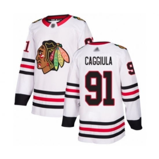 Youth Chicago Blackhawks #91 Drake Caggiula Authentic White Away Hockey Jersey