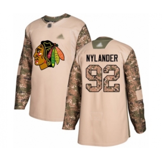 >Youth Chicago Blackhawks #92 Alexander Nylander Authentic Camo Veterans Day Practice Hockey Jersey
