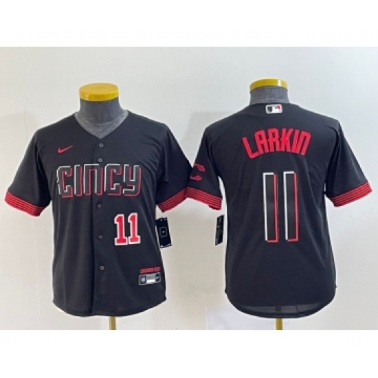 Youth Cincinnati Reds #11 Barry Larkin Number Black 2023 City Connect Cool Base Stitched Jersey1