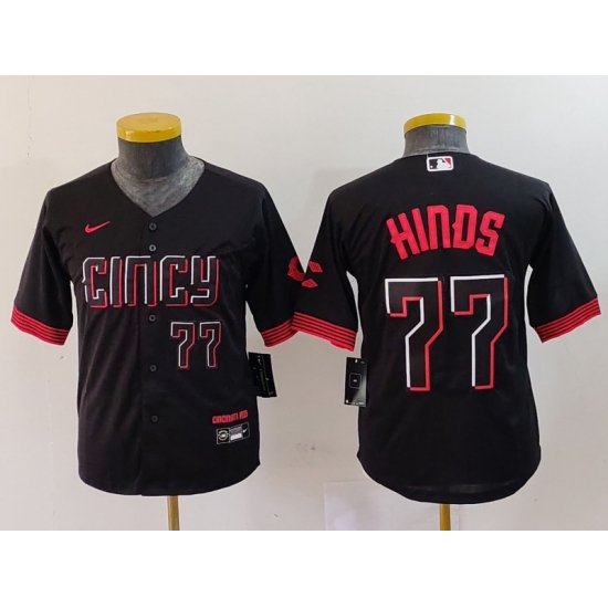 Youth Cincinnati Reds #77 Rece Hinds Number Black 2023 City Connect Cool Base Stitched Jersey