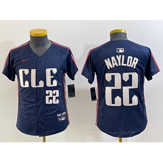>Youth Cleveland Guardians #22 Josh Naylor Number Navy 2024 City Connect Limited Stitched Jersey