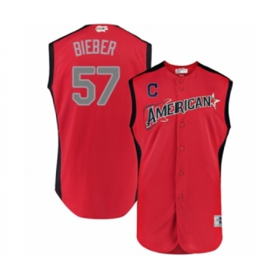 >Youth Cleveland Indians #57 Shane Bieber Authentic Red American League 2019 Baseball All-Star Jersey