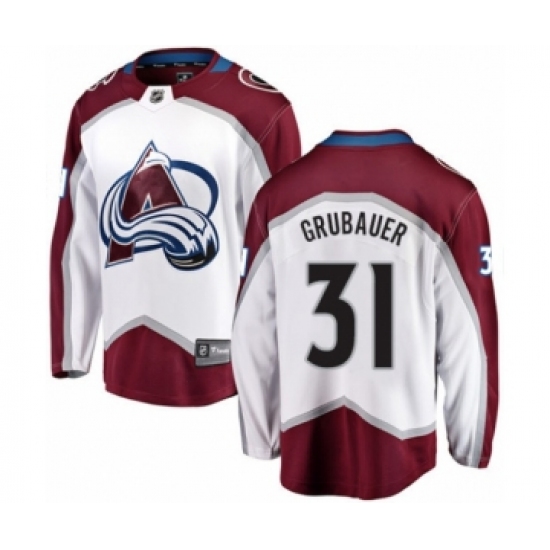 >Youth Colorado Avalanche #31 Philipp Grubauer Authentic White Away Fanatics Branded Breakaway NHL Jersey
