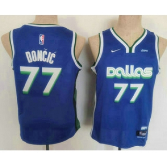Youth Dallas Mavericks #77 Luka Doncic 2022 Blue City Edition Stitched Jersey With Sponsor