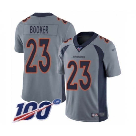 >Youth Denver Broncos #23 Devontae Booker Limited Silver Inverted Legend 100th Season Football Jersey