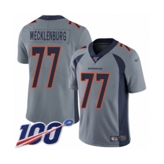 >Youth Denver Broncos #77 Karl Mecklenburg Limited Silver Inverted Legend 100th Season Football Jersey