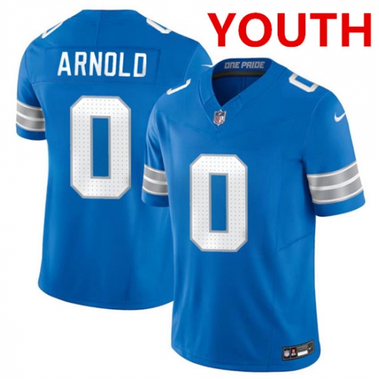 >Youth Detroit Lions #0 Terrion Arnold Blue 2024 Draft F.U.S.E. Vapor Untouchable Limited Football Stitched Jersey