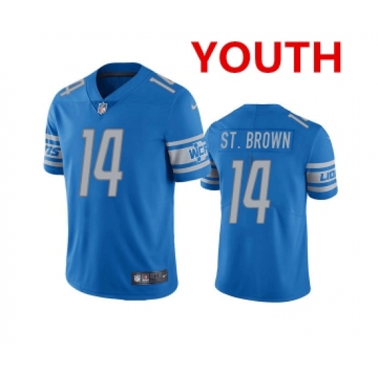 >Youth Detroit Lions #14 mon-Ra St. Brown Blue Vapor Untouchable Limited Stitched Jersey