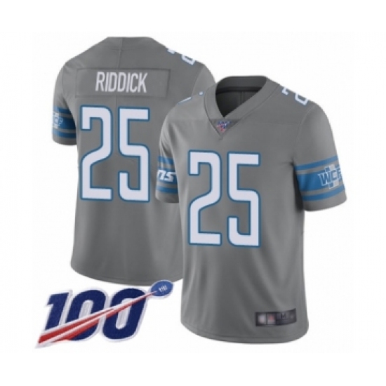 >Youth Detroit Lions #25 Theo Riddick Limited Steel Rush Vapor Untouchable 100th Season Football Jersey