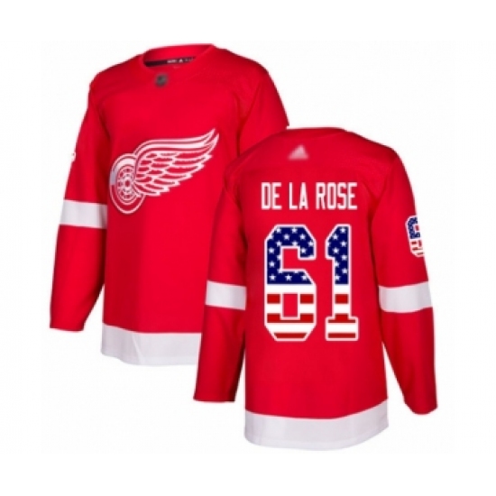 >Youth Detroit Red Wings #61 Jacob de la Rose Authentic Red USA Flag Fashion Hockey Jersey