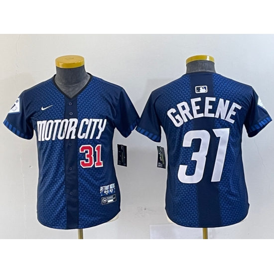 >Youth Detroit Tigers #31 Riley Greene 2024 Navy City Connect Cool Base Limited Stitched Jerseys