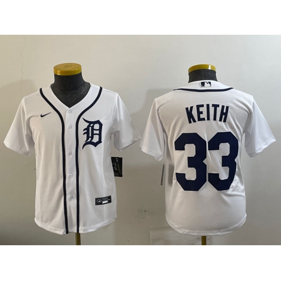 >Youth Detroit Tigers #33 Colt Keith White Cool Base Stitched Jersey