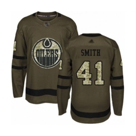Youth Edmonton Oilers #41 Mike Smith Authentic Green Salute to Service Hockey Jersey