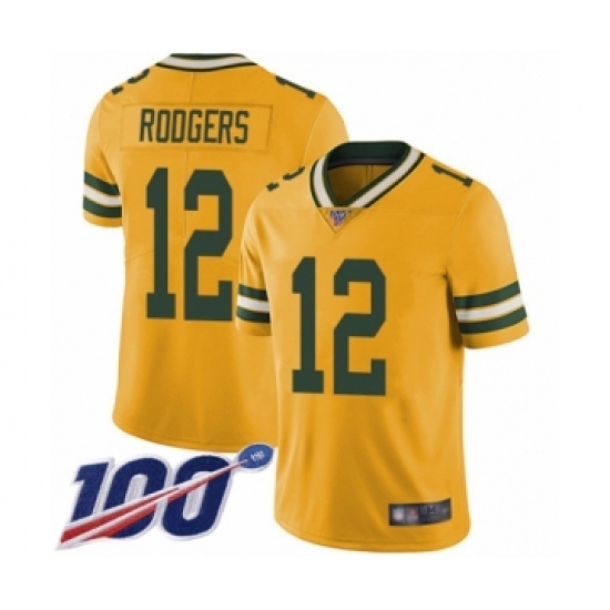 Youth Green Bay Packers #12 Aaron Rodgers Limited Gold Rush Vapor Untouchable 100th Season Football Jersey