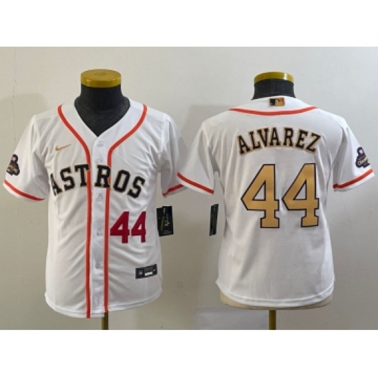 Youth Houston Astros #44 Yordan Alvarez Number 2023 White Gold World Serise Champions Cool Base Stitched Jerseys