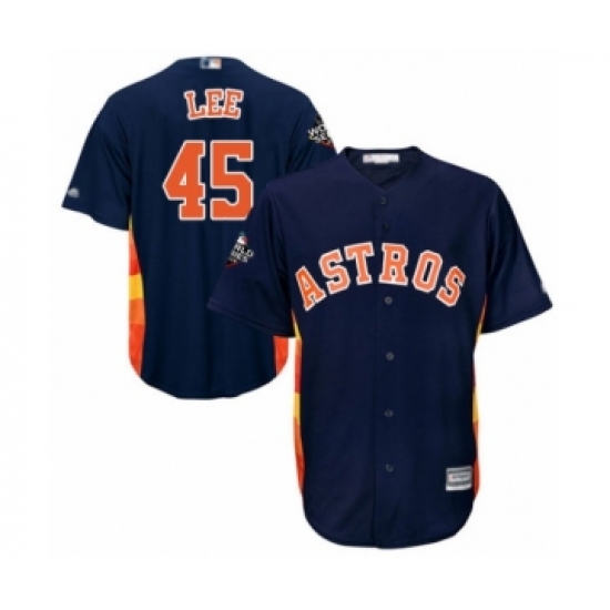Youth Houston Astros #45 Carlos Lee Authentic Navy Blue Alternate Cool Base 2019 World Series Bound Baseball Jersey