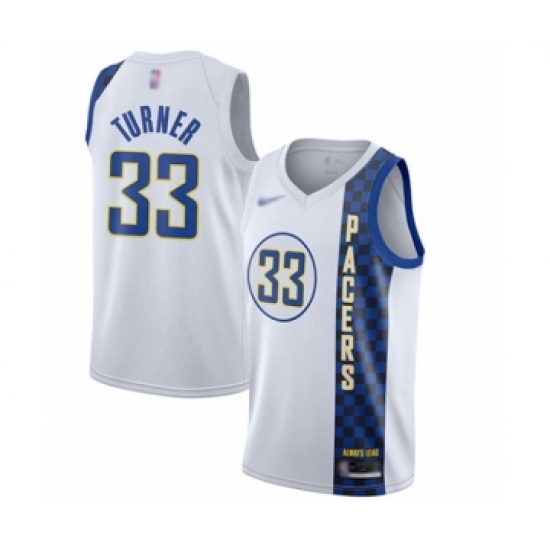 >Youth Indiana Pacers #33 Myles Turner Swingman White Basketball Jersey - 2019 20 City Edition