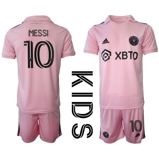 >Youth Inter Miami CF #10 Lionel Messi Pink Home Soccer Jersey
