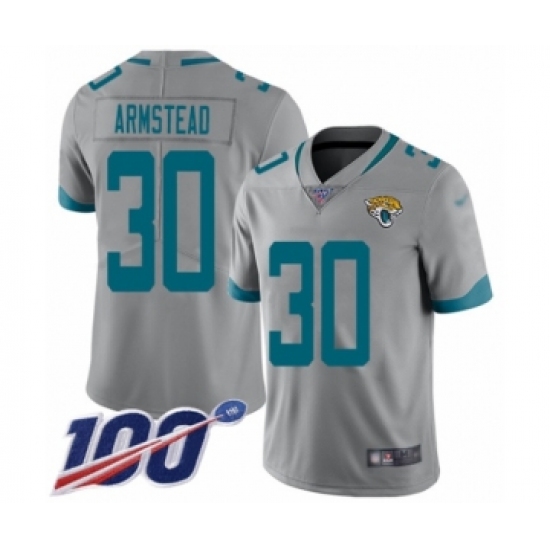 >Youth Jacksonville Jaguars #30 Ryquell Armstead Silver Inverted Legend Limited 100th Season Football Jersey