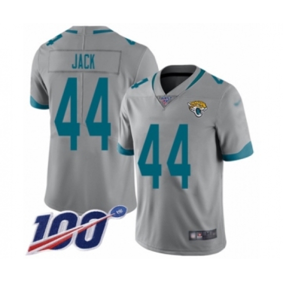 >Youth Jacksonville Jaguars #44 Myles Jack Silver Inverted Legend Limited 100th Season Football Jersey